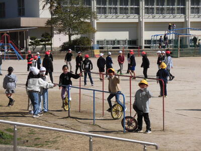 一輪車の1年生は、カメラに気づいて手を振ってくれました。