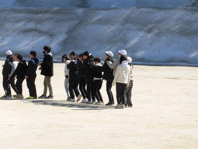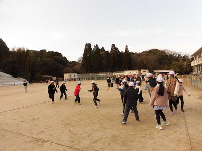 1年生は、みんなで長縄を楽しんでいました。