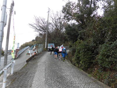 漏水防止工事のため、学校西坂の通行止めをしています。