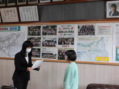 今日は、「有明新報」の記者さんが、「有明新年文芸」に入賞した子どもの取材に来られました。