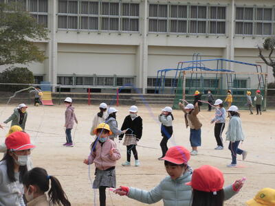 今日も、運動場は縄跳びをする子供たちで一杯です。