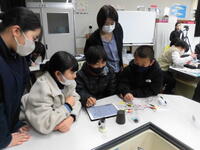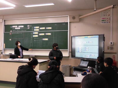 6年生は、プログラミングで人感センサーを作動させ、防犯ライトを点滅させる問題に取り組みました。