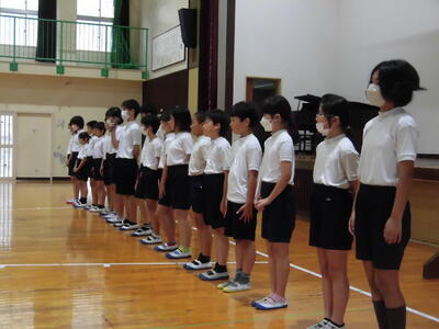 「回れ、右」で、くるくる回る子もいて、ほのぼのとした練習風景です。