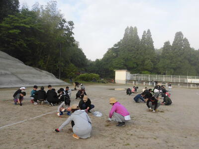 黙々と取り組んでいただいたおかげで、運動場の緑のエリアがほとんどなくなりました。