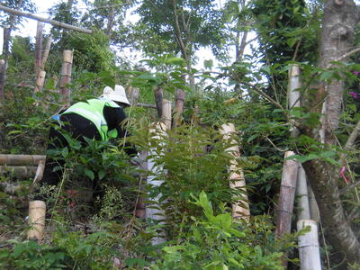 学校坂の竹が広がらないように、パトロールして、タケノコの段階で退治するようにしています。