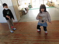 2年担任の花田先生と6年生の女の子たちが、長縄で遊んでいるのです。