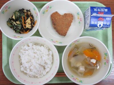 ちなみに、今日の私(校長)の「かつおフライ」は、偶然にもハートマークでした。