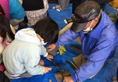 12月17日(土)に、地域学校協働活動の一環で、老人会の方々に教えていただきながら、校門に飾る大きな門松作りと、家に飾るミニ門松作りを行いました。門松の作り方を教えてもらう子供たちは、慣れない手つきで竹を斜めに切り、南天の実や松の葉などを思い思いに飾っていきました。