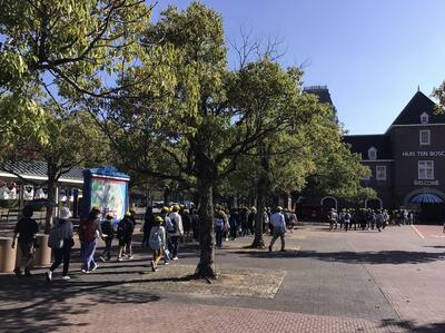 6年生の修学旅行は、ハウステンボスでのあっという間の3時間が過ぎ、集合場所で最後の買い物を楽しんでいます。