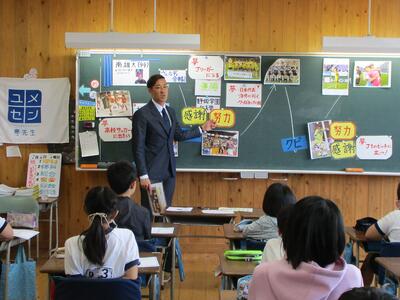 明日はサッカーの「ロアッソ熊本」でも活躍された南雄太さんが来校され、5年3組の子供たちにメッセージを届けていただきます。