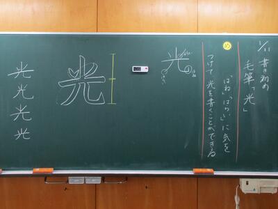 今日(1月11日)は4年生で「書き初め」の授業がありました。「はね」や「はらい」に気を付け、お手本をしっかりと見ながら一生懸命に書いていました。