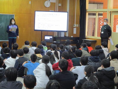 3月に卒業式を迎える6年生にとっては、この3学期は小学校生活を締めくくるとても貴重な毎日となります。それと同時に3学期は中学生への準備期間でもあります。これから卒業へ向けて様々な取組をしていきますが、今日(1月15日)は昨年まで益城中の校長をされていた先生に、中学校の様子や小学校と中学校の違い、中学生へ向けた心構え等を話していただきました。
