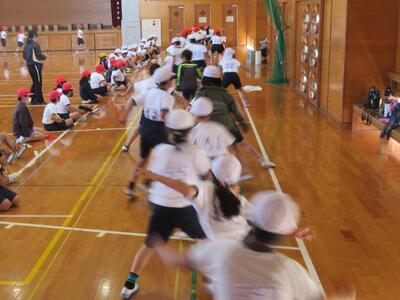 今年の運動会では、徒競走は全学年で行い、団体競技を奇数学年、表現(ダンス)を偶数学年で行います。
