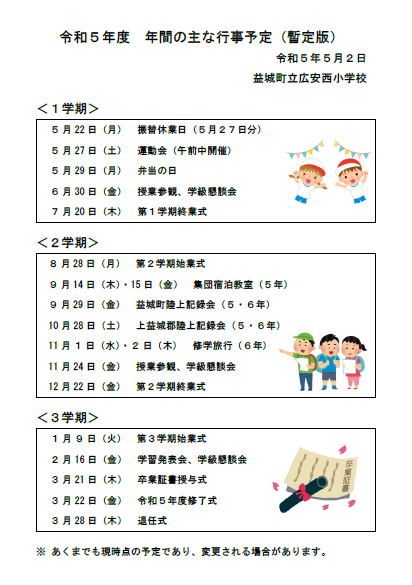 【学校からのおたより】年間の主な行事予定(暫定版)