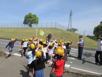 今日(5月2日)は、1・2年、3・5年、4・6年に分かれて、交通安全教室を開催しました。