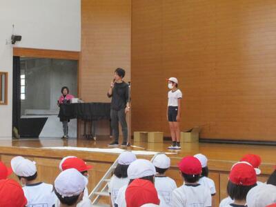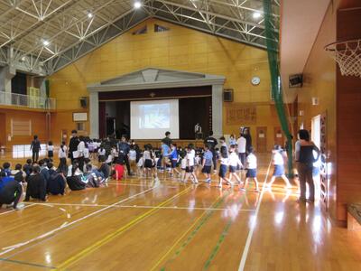 また、児童会運営委員会と生活委員会からの発表もあり、最後は校歌を歌いました。