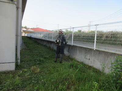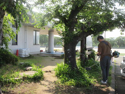 おかげさまで、雑草が伸び放題だった校舎周辺がすっきりときれいになり、明後日(5月27日)の運動会を気持ちよく迎えることができるようになりました。本当にありがとうございました。