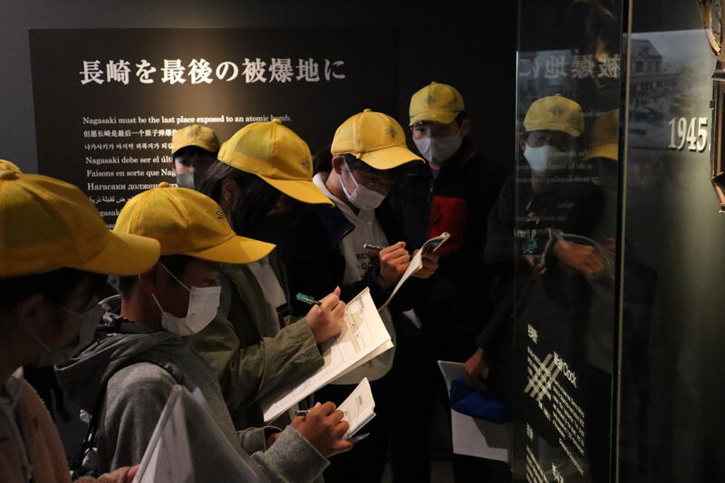 平和学習として訪れた「ひみつ基地ミュージアム(人吉海軍航空基地跡)」では、資料を見学したり、フィールドワークをしたりして、当時の様子を肌で感じることができました。特に、フィールドワークで戦時中に使われていた壕の中を見学した時には、子どもたちはとても驚いた様子でした。1日を通して、戦争という過ちを二度と繰り返してはいけないという思いを改めて強く持つことができました。