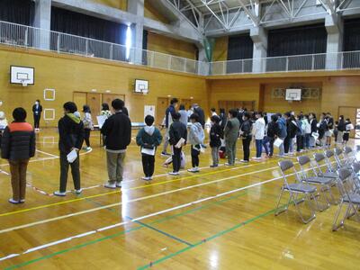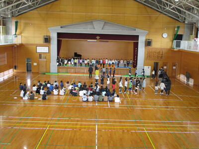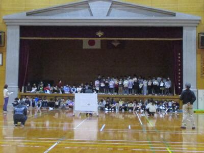 写真は今日(2月5日)の体育館での練習の様子です。初めての学年全体での練習でしたが、迫力ある大きな声が体育館中に響き渡っていました。
