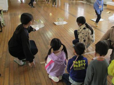体験入学については他の行事と同じように4年ぶりの実施となりました。新1年生に少しでも早く学校に慣れてもらうために、もうすぐ最上級生となる5年生が学校内を案内したり、ボーリングや輪投げ、折り紙などをしたりしてくれました。