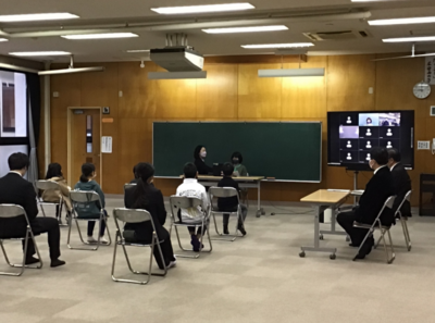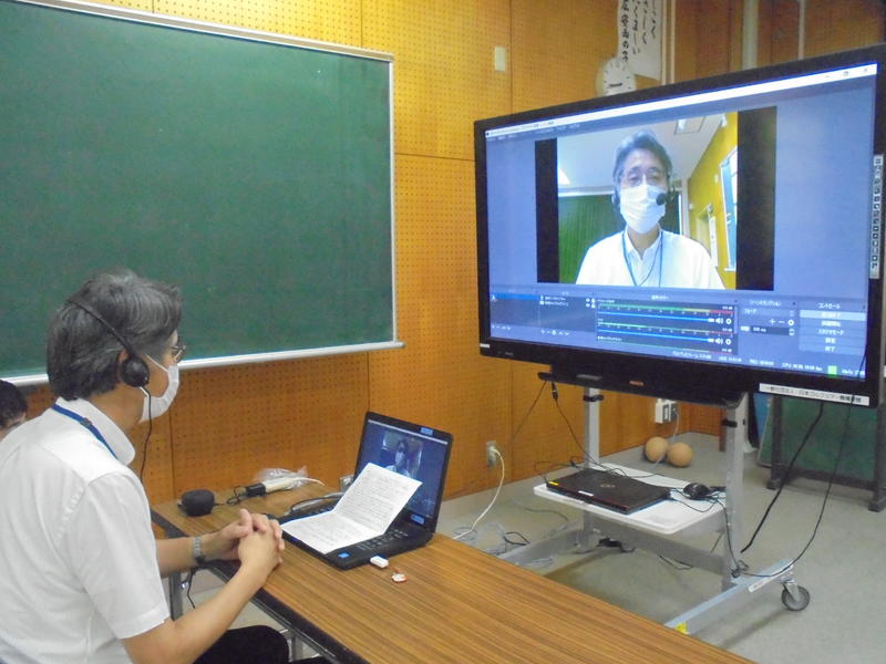 しかし、全ての活動が「いつも通りに」という訳にはいきません。1時間目に行われた全校集会は体育館に集合するのではなく、テレビモニターを使ったライブ配信形式で行いました。