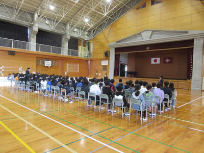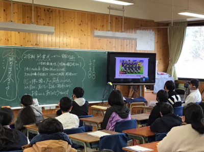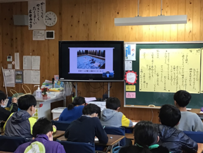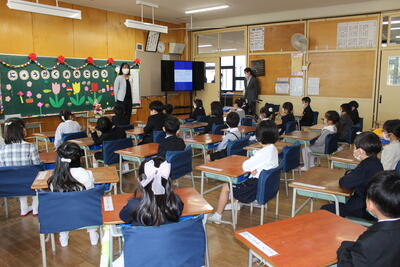 続いて生徒指導担当から冬休みの生活、養護教諭から冬休みの健康な過ごし方について話がありました。教室の子どもたちは集中して話を聞くことができました。