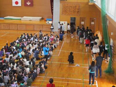 もうすぐ卒業を迎える6年生へ感謝の気持ちを伝えるための「卒業を祝う会」を、今日(3月1日)、実に6年ぶりに開催しました。
