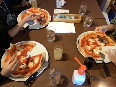 6年生の修学旅行は、昼食もグループごとに食べています。佐世保名物の「佐世保バーガー」や「レモンステーキ」などたくさんあるレストランの中から、いろいろと悩みながら選んでいます。