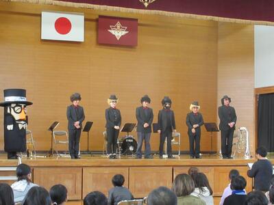 コンサートでは、熊本県内を中心に活躍されているアンサンブルグループ「Dad-a-LOCA(ダッダ ロカ)」のみなさんが、楽しいおしゃべりも交えながら、たくさんの曲を披露してくださいました。また、マスコットキャラクターの「ロカくん」も登場し、子供たちは大喜びでした。