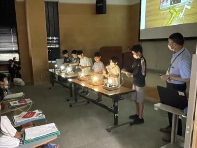 午後からは再び「熊本県環境センター」や「水俣病資料館」に戻り、実験や見学をしました。環境センターでは、LEDと白熱電球の実験を通して、環境問題についてさらに深く学びました。