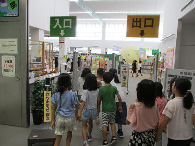 今日(9月21日)は、2年2組と4組の子供たちが生活科「みんなでつかう まちのしせつ」の学習を深めるために、「益城町図書館」へ見学に行きました。