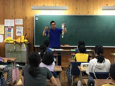 少し前(9月8日)のことになりますが、5年生の社会科「水産業がさかんな地域」での学習を深めるために、実際に有明海で海苔の養殖業に携わっておられる方々に特別授業をしていただきました。