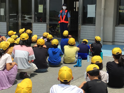 5月31日に、御船警察署、益城町役場、交通指導員の方々に来ていただき、交通安全教室を実施しました。