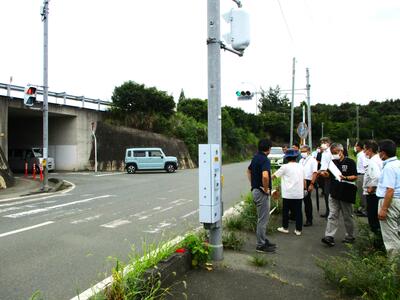 8月23日(水)は、町当局や警察の方々と一緒に通学路の危険箇所を点検し、子供たちが安全に通学できるように改善の要望をしました。