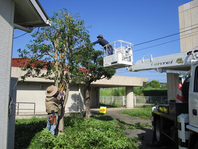 8月16日(水)には校舎内のワックスがけ、8月22日(火)には樹木の剪定、8月25日(金)には通学路の除草作業を、それぞれ専門業者の方々に行っていただきました。