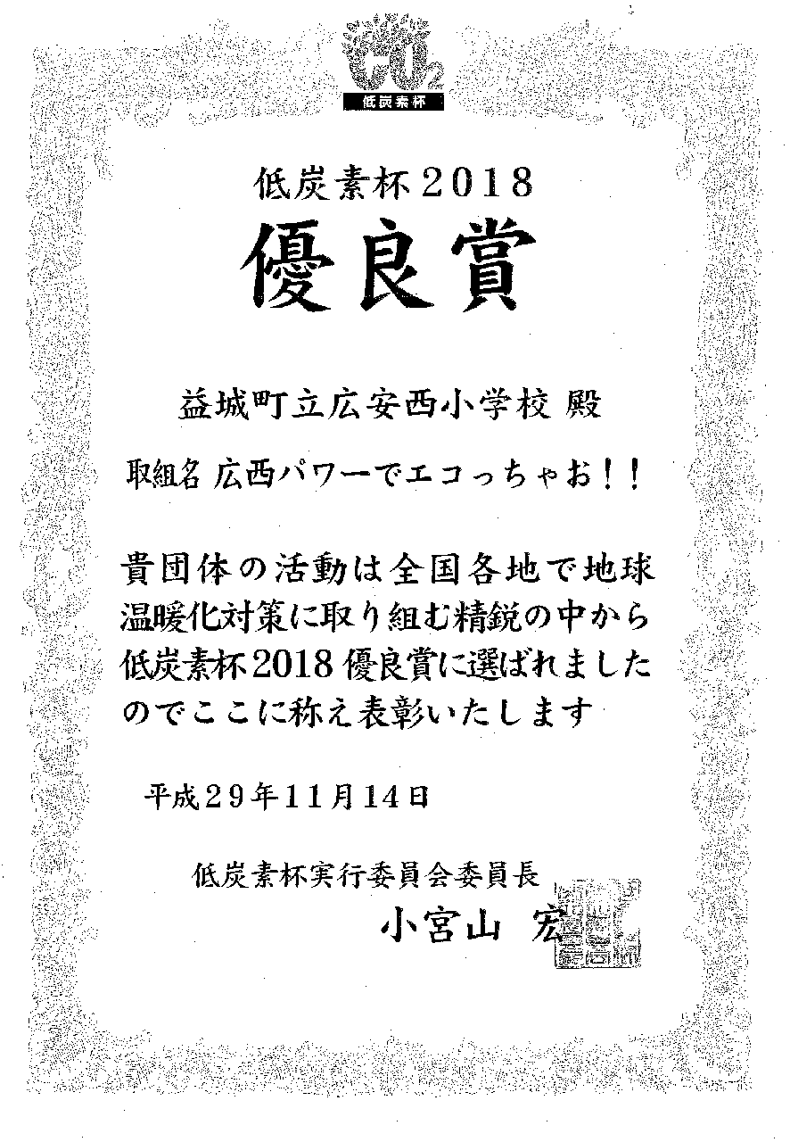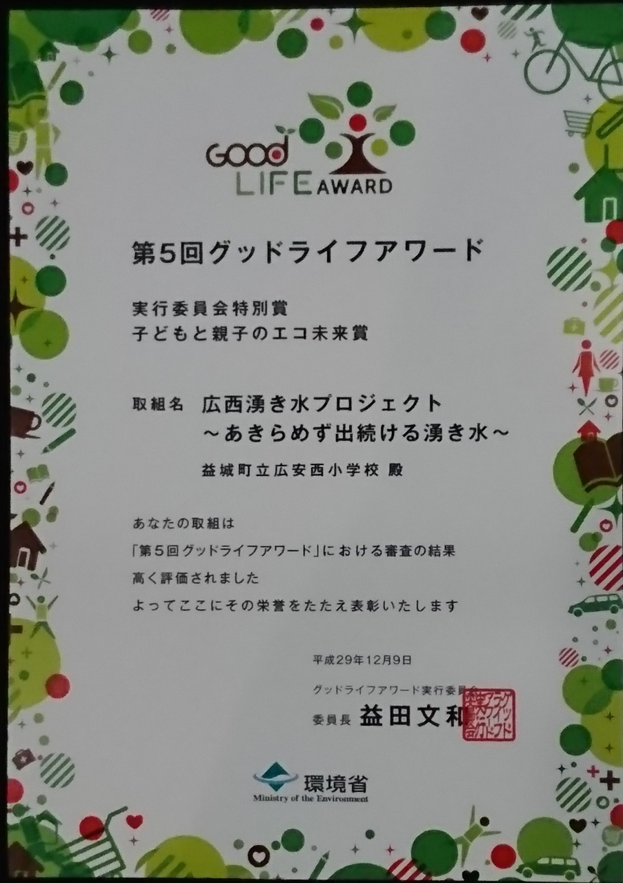 社会人や一般企業による、循環型の快適な社会をつくる取組が表彰される中、広安西小学校環境委員会による水環境保全と美化活動が実行委員会特別賞を受賞しました。