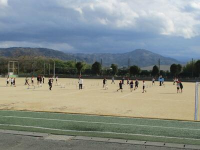 今日(12月1日)から12月に入りました。熊本でも少しずつ冬の訪れが感じられるようになり、今日は日中も肌寒さを感じる天気でしたが、運動場では4年生が体育の授業で、元気に「ハードル走」に取り組みました。