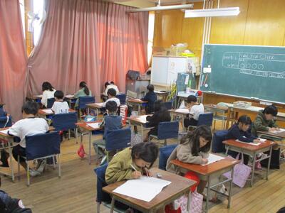 写真は、今日(12月4日)の1年生の様子です。初めての経験する学力調査ですが、どの教室でも最後まで一生懸命に頑張っている子供たちの姿が見られました。
