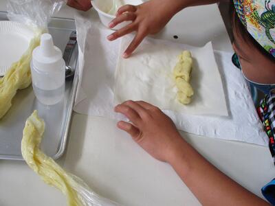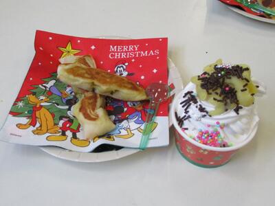 写真は、昨日(12月6日)と今日(12月7日)の「おいもパーティー」の様子です。先月たくさん掘ったさつまいもを使って、保護者の方々にも協力していただきながら、「さつまいもモンブラン」と「スィートポテトステック」を作りました。