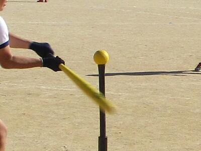 そのような中、3年生の体育では「ティーボール」に取り組んでいます。「ティーボール」とは野球やソフトボールに似ていますが、ピッチャーがボールを投げる代わりに、バッティングティーに乗せたボールをバッターが打つところが大きく違います。止まったボールを打つので、野球やソフトボールに馴染みのない子供たちも楽しくゲームをすることができます。