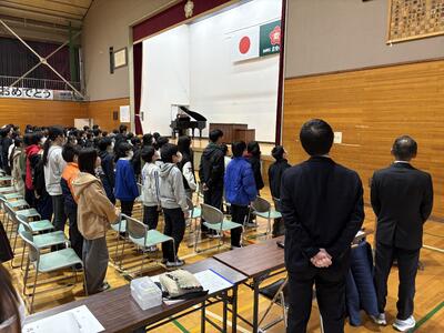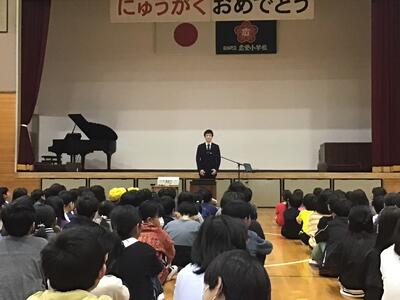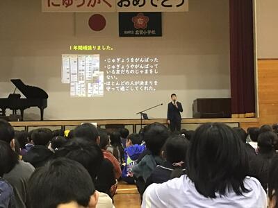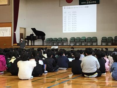 代表発表の後は、冬休みの健康について米井先生から、冬休みの生活について松尾先生から話しがありました。二人の先生はとても分かりやすいプレゼン資料を作ってくださっていたので、みんな集中して聞くことができました。米井先生の「生活リズムを大切にする」松尾先生の「3つの『あ』+2つの『あ』」をしっかり守って楽しい冬休みを過ごしてください。