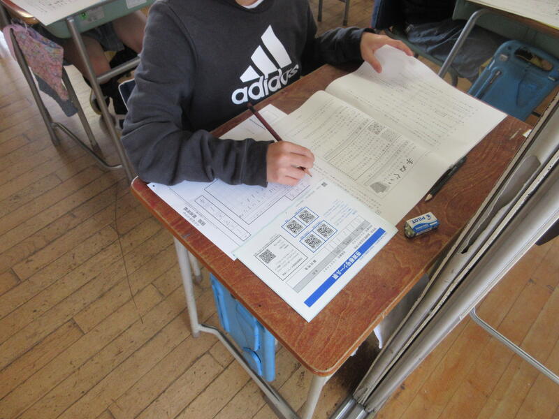 1年生は「算数の引き算」、2年生は「国語の作文発表」、3年生は「総合的な学習のまとめ 益城町の発表」、4年生は「図画工作の鑑賞」、5年生は「家庭科の裁縫」、6年生は「道徳の心の授業」、ひまわり学級は「学習したことの発表」と、それぞれ工夫がありました。