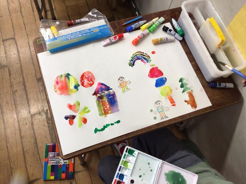 図工の学習で、絵の具のにじみを生かした学習を行いました。水をたっぷりとふくませた筆を使って、絵の具のにじみを生かした絵を一人一人が描くことができました。とても淡い感じの絵が多く、絵の具の色の持つ面白さに子どもたちもふれることができたのではないでしょうか。