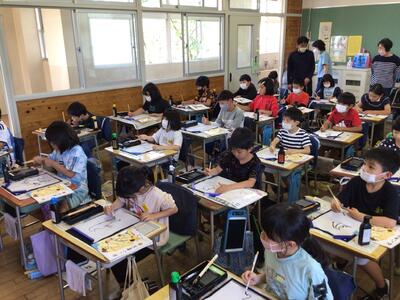 3年生では習字の学習が始まりました。初めて習うことにワクワクの3年生!準備の仕方や筆の持ち方など基本的なことを学びました。また、3年生には習字ボランティアの方がついて下さるので、子どもたちも安心して学習に向かうことができます。これからの上達に期待したいですね。