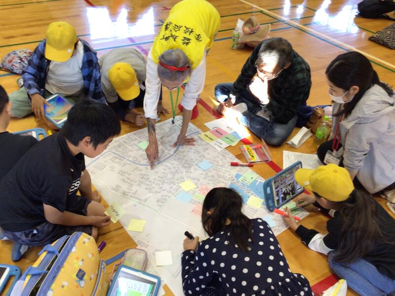 11月2日(木)に、4年生全員で、自分たちの住んでいる地域にフィールドワークに出かけました。多くのボランティアの方や大学生に協力していただき、危険なところや復興したところ、防災設備などを見つけて回りました。その後、防災マップ作りもしました。自分たちが普段通っている通学路にも危険なところがあることに気付いていました。