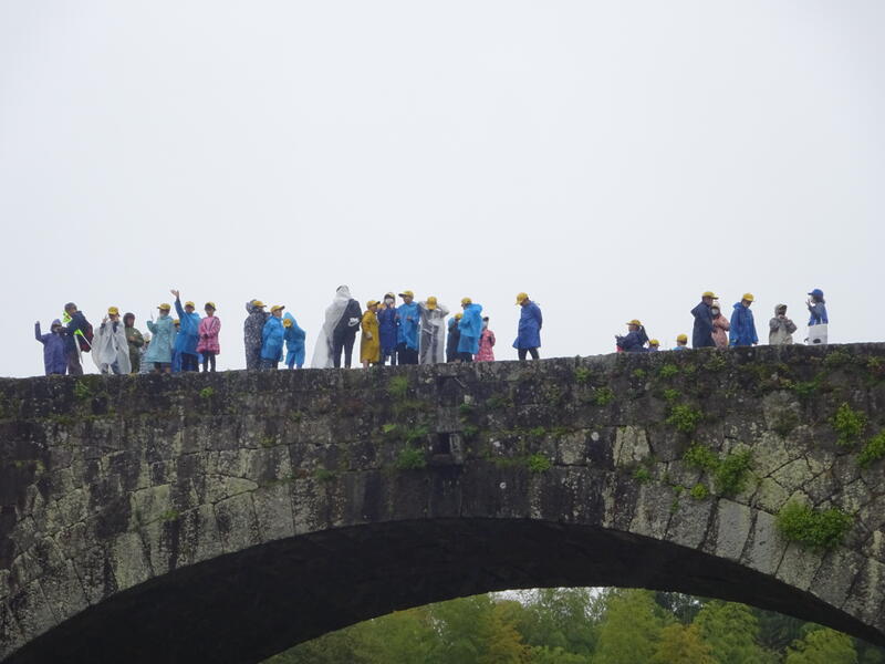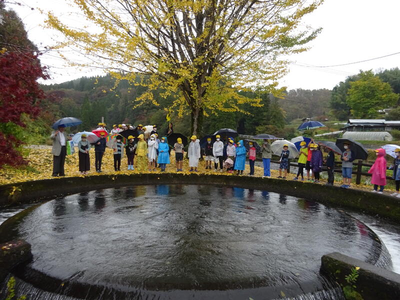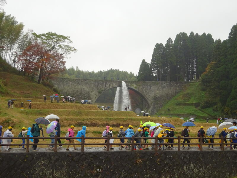 11月10日(金)に、見学旅行で通潤橋、円形分水、鮎の瀬大橋に行きました。雨の中でしたが、楽しく活動することができました。実際に通潤橋を見たり、ボランティアガイドさんに話を聞いたりしながら、学習を深めることができました。