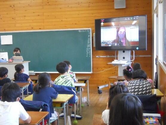 7月16日(金)、ALTのエリー先生とのお別れ会を行い、各教室に動画配信しました。エリー先生は、約2年間本校のALTとして勤務され、先生のおかげで英語が好きになった子はとても多かったと思います。また、エリー先生は絵が得意で、校内の英語コーナーには先生が描かれた素敵なイラスト付きの掲示物がいつもありました。先生とのお別れは寂しいですが、これまで教えてもらったことを生かして、2学期からもがんばっていきます。
