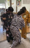 そして、着物クラブは、ゆかたの着付けを一人でできるようになる練習に取り組んでいました。いつか、自分で着付けした浴衣でおでかけできるといいですね。