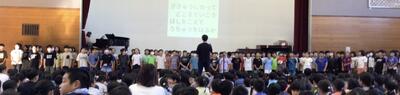 4年生は、「気球にのってどこまでも」の合唱を披露してくれました。暑い中でしたが、4年生のさわやで明るい歌声を聴いて、朝から気分爽快になりました。10月にある郡音楽会も学校の代表として頑張ってくれることと思います。がんばれ、4年生!! 4年生は、「気球にのってどこまでも」の合唱を披露してくれました。暑い中でしたが、4年生のさわやで明るい歌声を聴いて、朝から気分爽快になりました。10月にある郡音楽会も学校の代表として頑張ってくれることと思います。がんばれ、4年生!!