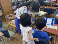 令和6年9月13日(金)は、職場体験学習の最終日でした。1週間の間に、2,3,5年生と様々学年の子どもたちと関わっていただきました。一緒に遊んだり、給食を食べたり、版画をしたり、体育をしたり・・・。お二人にとっても、あっという間だったようです。体験に来られたお二人の感想を紹介します。